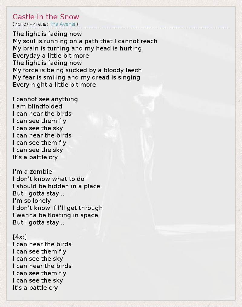 А как ты думаешь, о чем песня "Castle in the Snow" ?