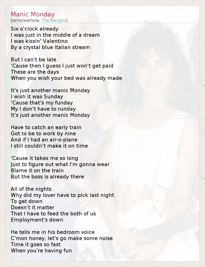 А как ты думаешь, о чем песня "Manic Monday" ?