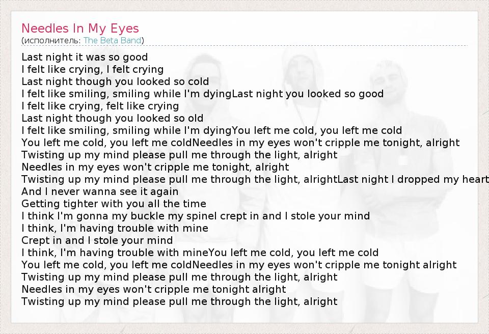 А как ты думаешь, о чем песня "Needles In My Eyes" ?