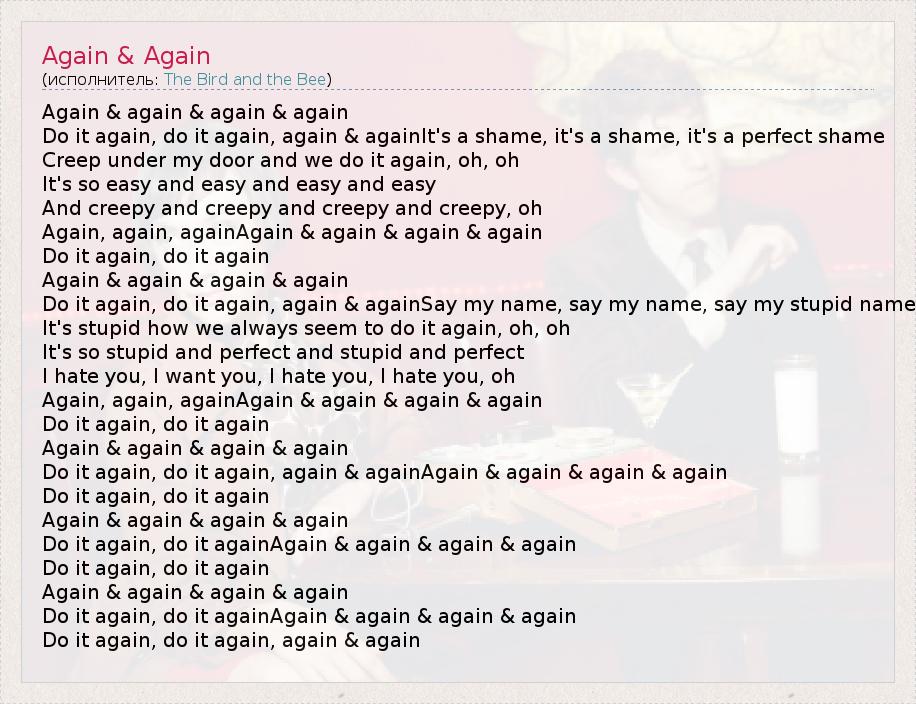Do it again, do it again, again & againSay my name, say my name, say my stupid name