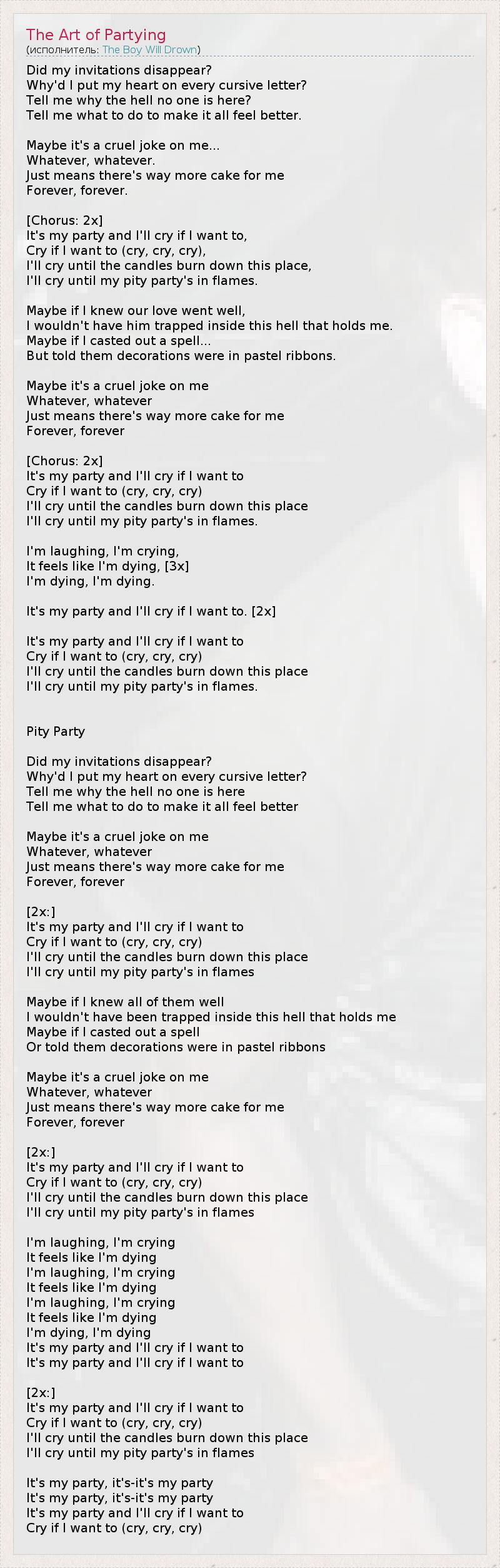 Это моя вечеринка и я буду плакать, если захочу. [2x]