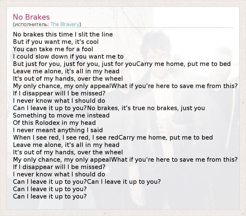Can I leave it up to you?No brakes, it's true no brakes, just you