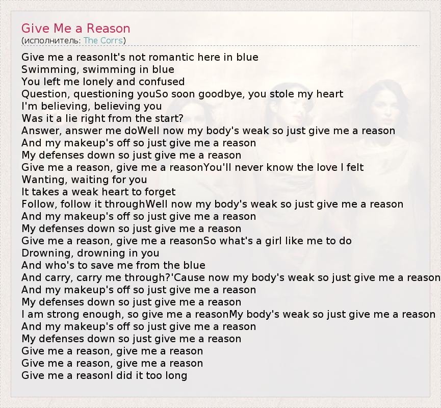 I am strong enough, so give me a reasonMy body's weak so just give me a reason