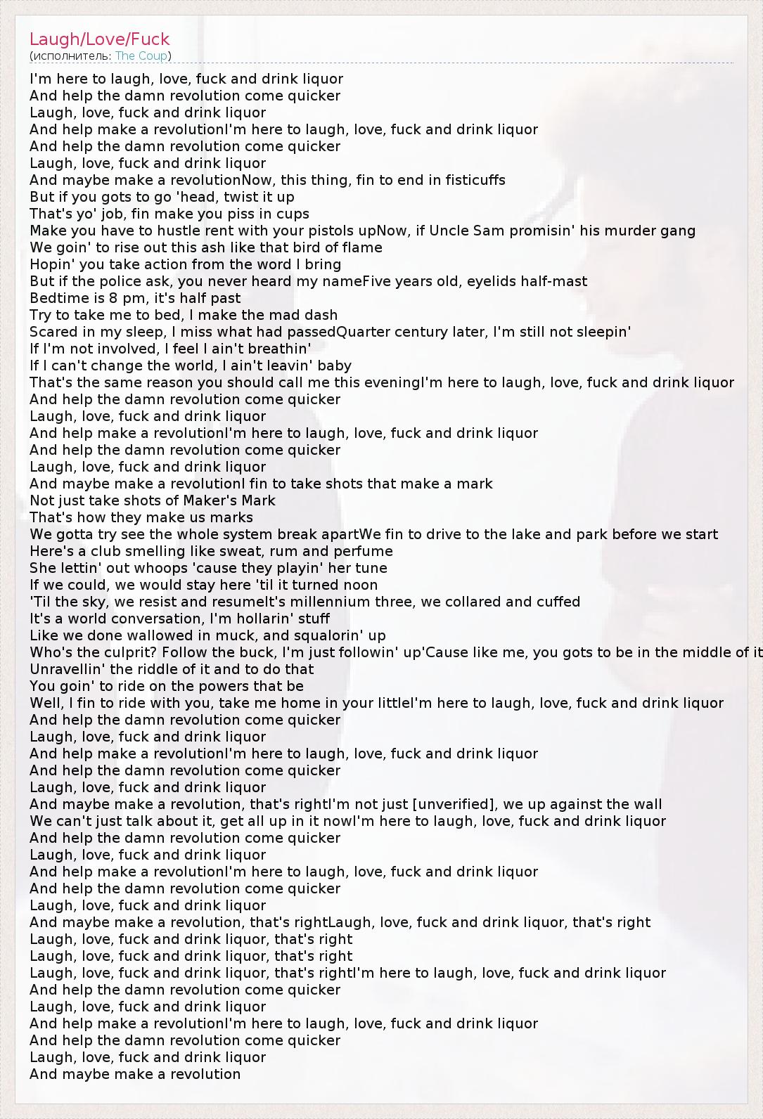 А как ты думаешь, о чем песня "Laugh/Love/Fuck" ?
