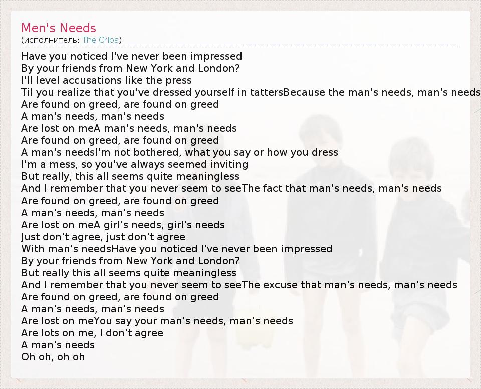 А как ты думаешь, о чем песня "Men's Needs" ?