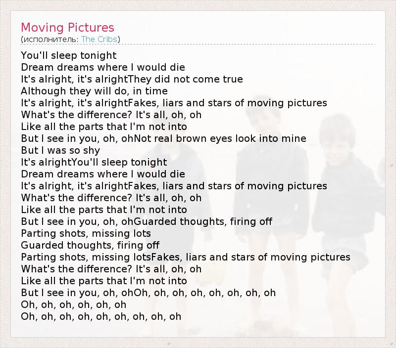 А как ты думаешь, о чем песня "Moving Pictures" ?