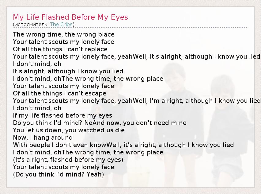 А как ты думаешь, о чем песня "My Life Flashed Before My Eyes" ?