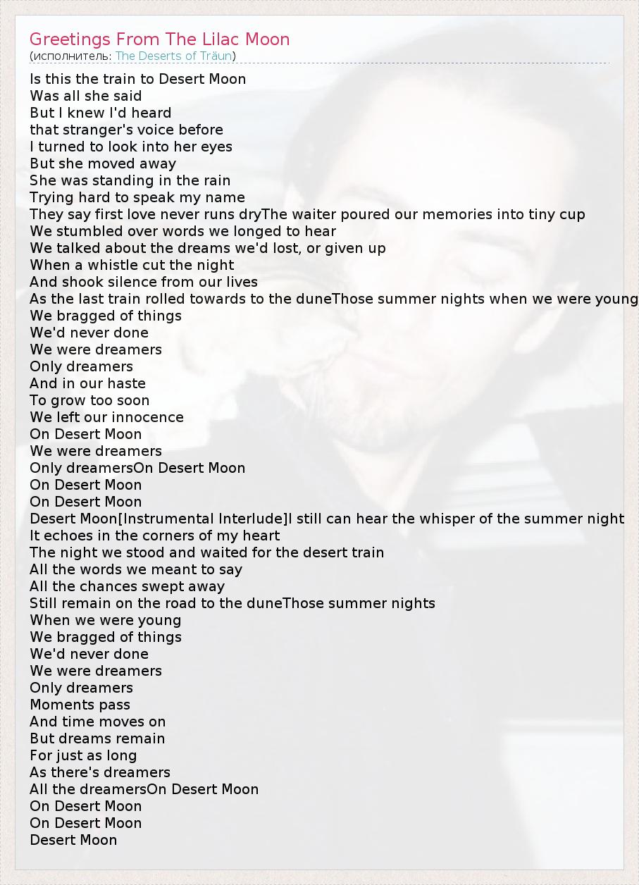 А как ты думаешь, о чем песня "Greetings From The Lilac Moon" ?