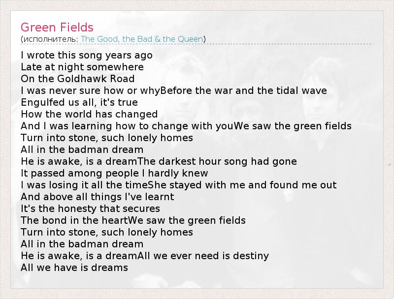 Это интересно:The Good, The Bad & The Queen – брит-поп проект из Великобритании, г. Лондон. История проекта с длинным и пафосным названием упирается в телефонные звонки, предложения попить кофе и поиграть вместе приятную музыку. Дэймон Албарн, фронтмен Blur, познакомился с Тони Алленом еще на записи сборника The Best of Blur, посвятив ему пару строк в одной из композиций. Саймон Тонг принимал участие в создании последнего... продолжение