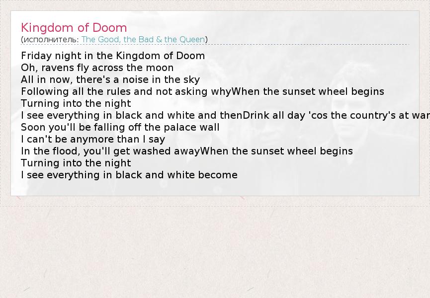 А как ты думаешь, о чем песня "Kingdom of Doom" ?