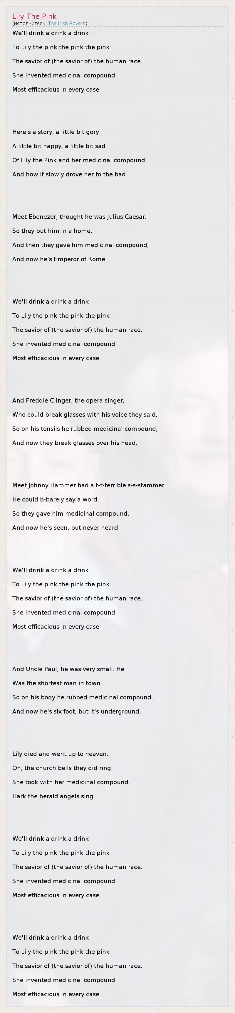 А как ты думаешь, о чем песня "Lily The Pink" ?