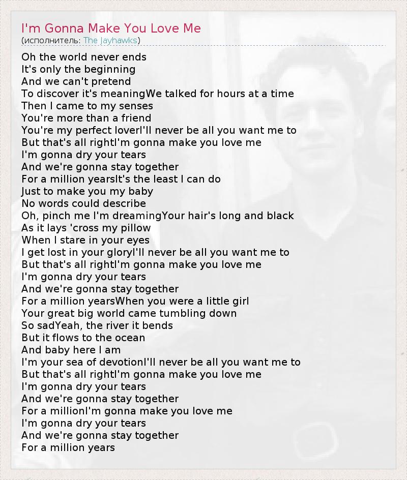 А как ты думаешь, о чем песня "I'm Gonna Make You Love Me" ?