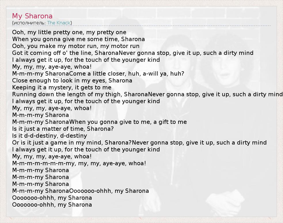 M-m-m-my SharonaWhen you gonna give to me, a gift to me