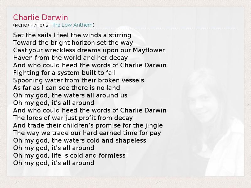 А как ты думаешь, о чем песня "Charlie Darwin" ?