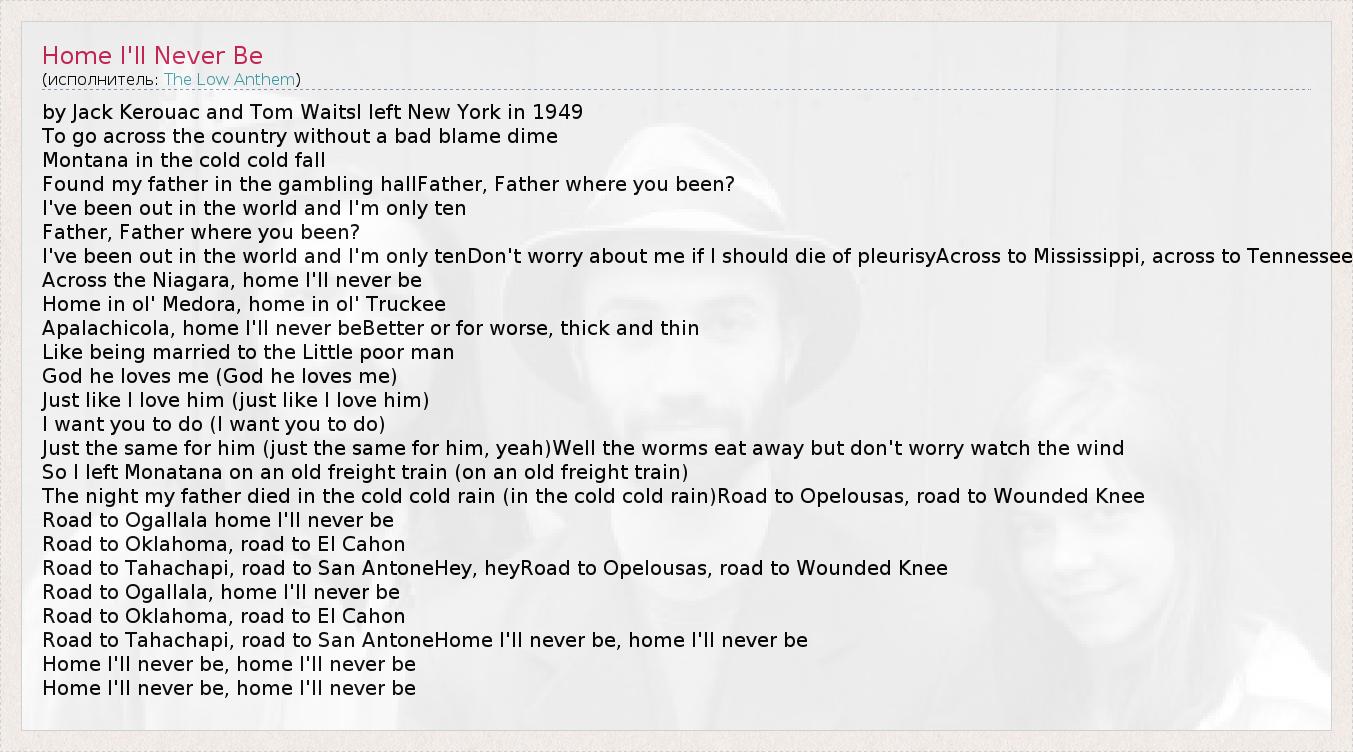 А как ты думаешь, о чем песня "Home I'll Never Be" ?