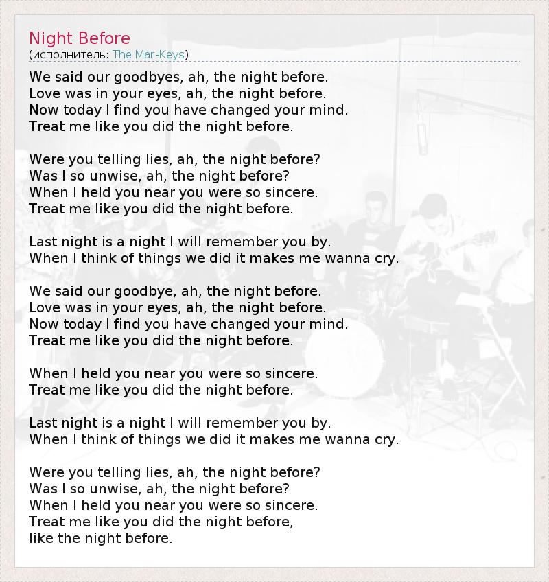 А как ты думаешь, о чем песня "Night Before" ?