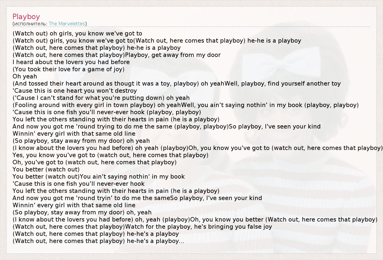 (Watch out, here comes that playboy)Playboy, get away from my door