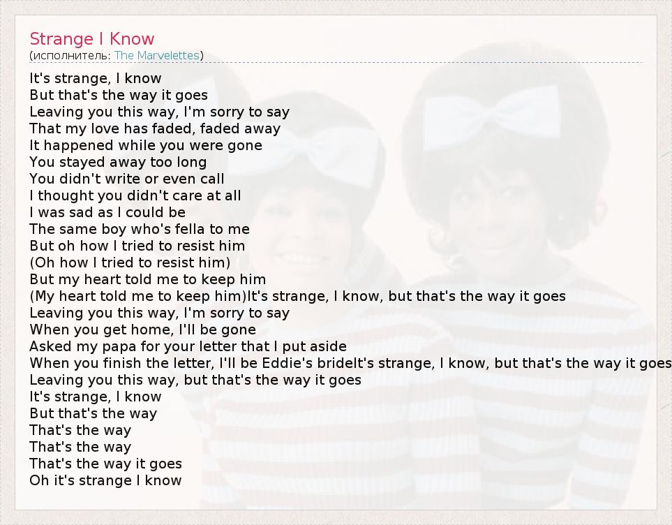 А как ты думаешь, о чем песня "Strange I Know" ?