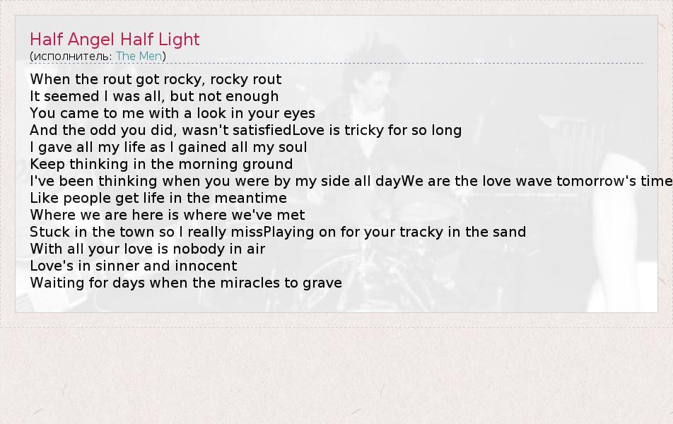 ГлавнаяИсполнителиThe MenHalf Angel Half Light