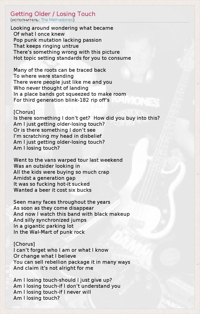 А как ты думаешь, о чем песня "Getting Older / Losing Touch" ?