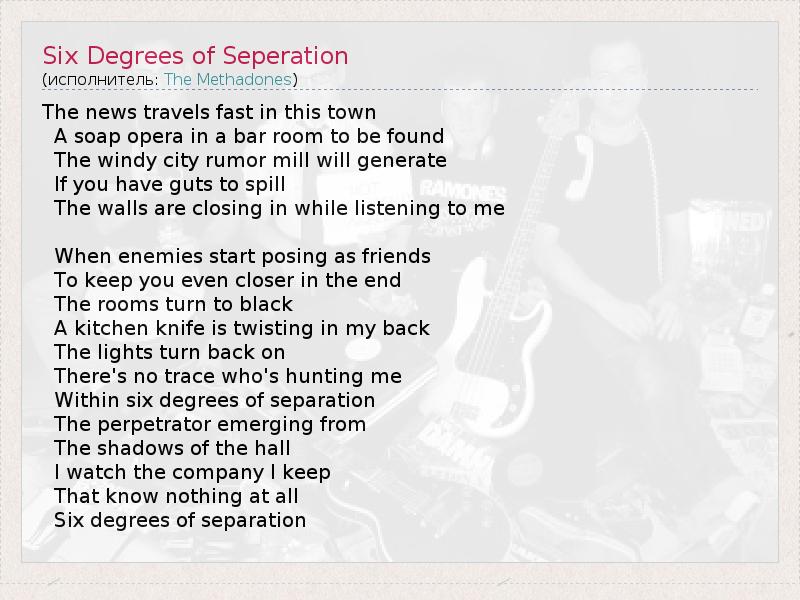 ГлавнаяИсполнителиThe MethadonesSix Degrees of Seperation