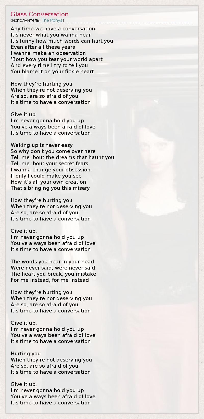 А как ты думаешь, о чем песня "Glass Conversation" ?