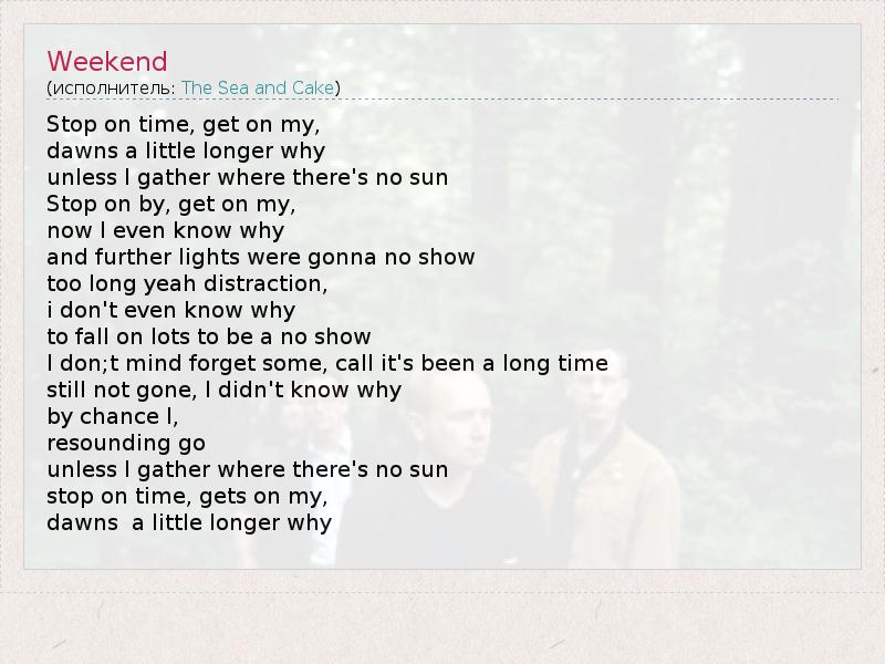 Это интересно:Группа The Sea And Cake образована в 1994 году в городе Чикаго. Коллектив, состоящий сплошь из заслуженных людей чикагского индепендента, возник на обломках Shrimp Boat, рекрутировав в свои ряды гитариста из Coctails и барабанщика из Tortoise.