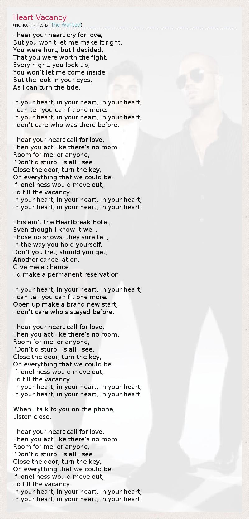 А как ты думаешь, о чем песня "Heart Vacancy" ?