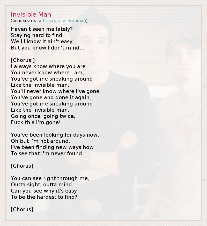 А как ты думаешь, о чем песня "Invisible Man" ?