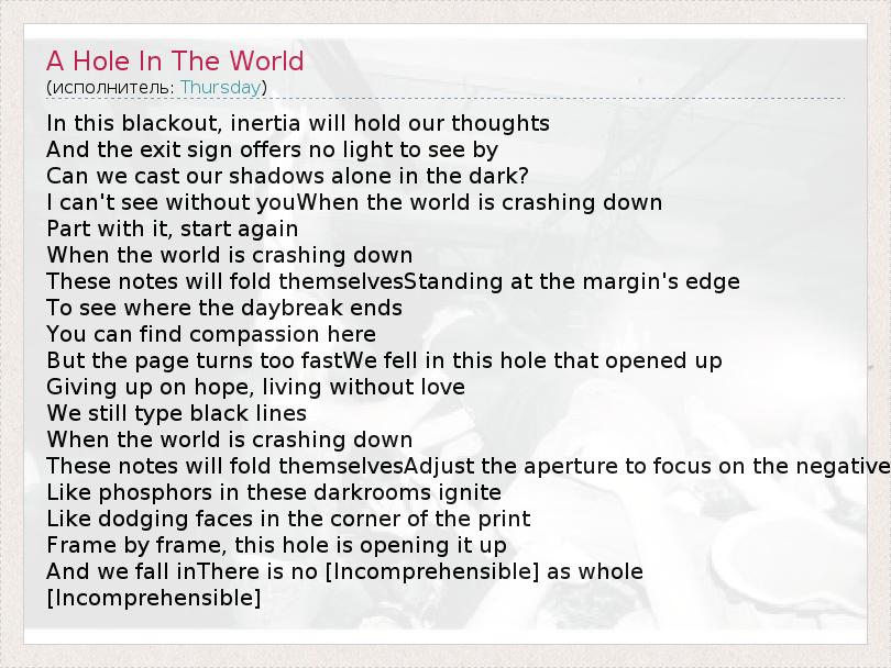 А как ты думаешь, о чем песня "A Hole In The World" ?