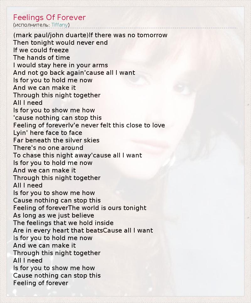 А как ты думаешь, о чем песня "Feelings Of Forever" ?