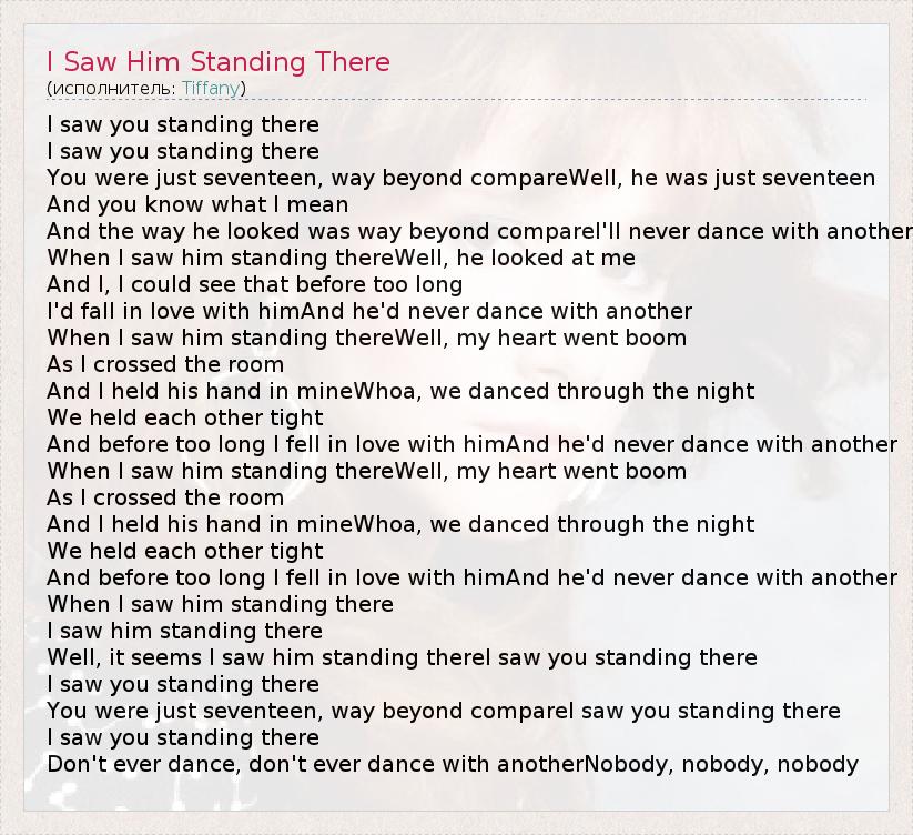 ГлавнаяИсполнителиTiffanyI Saw Him Standing There