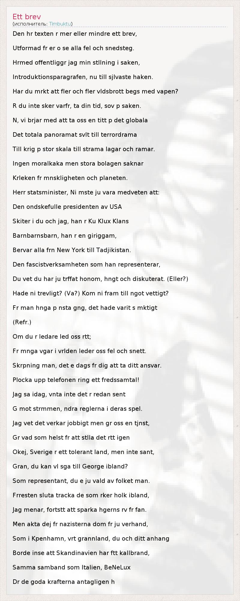 Это интересно:Тимбукту (родился 11 января 1975) — шведский певец.