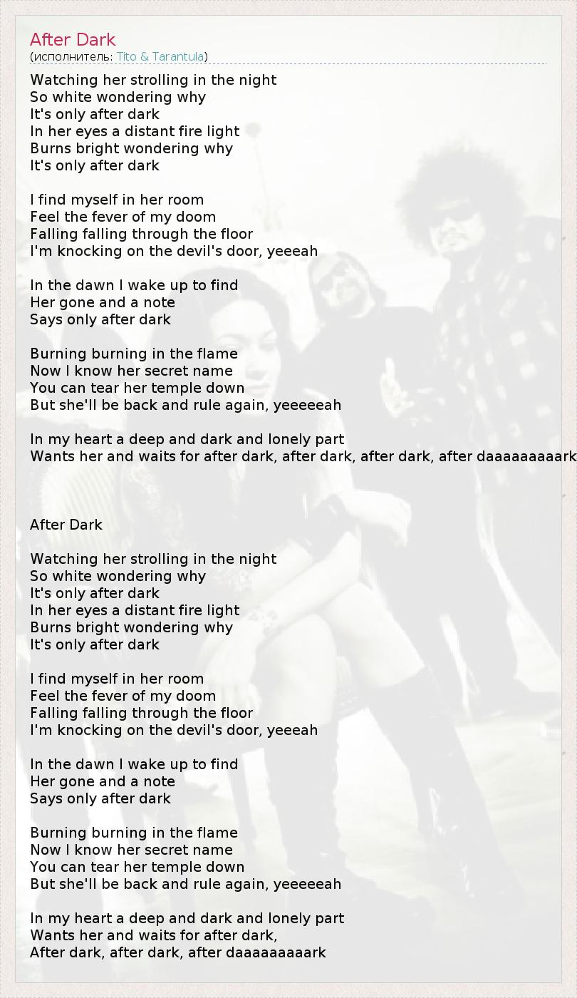 Wants her and waits for after dark, after dark, after dark, after daaaaaaaaark