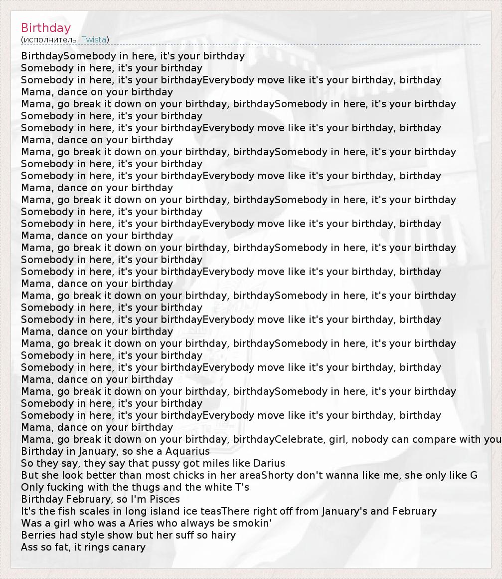 Mama, go break it down on your birthday, birthdaySomebody in here, it's your birthday