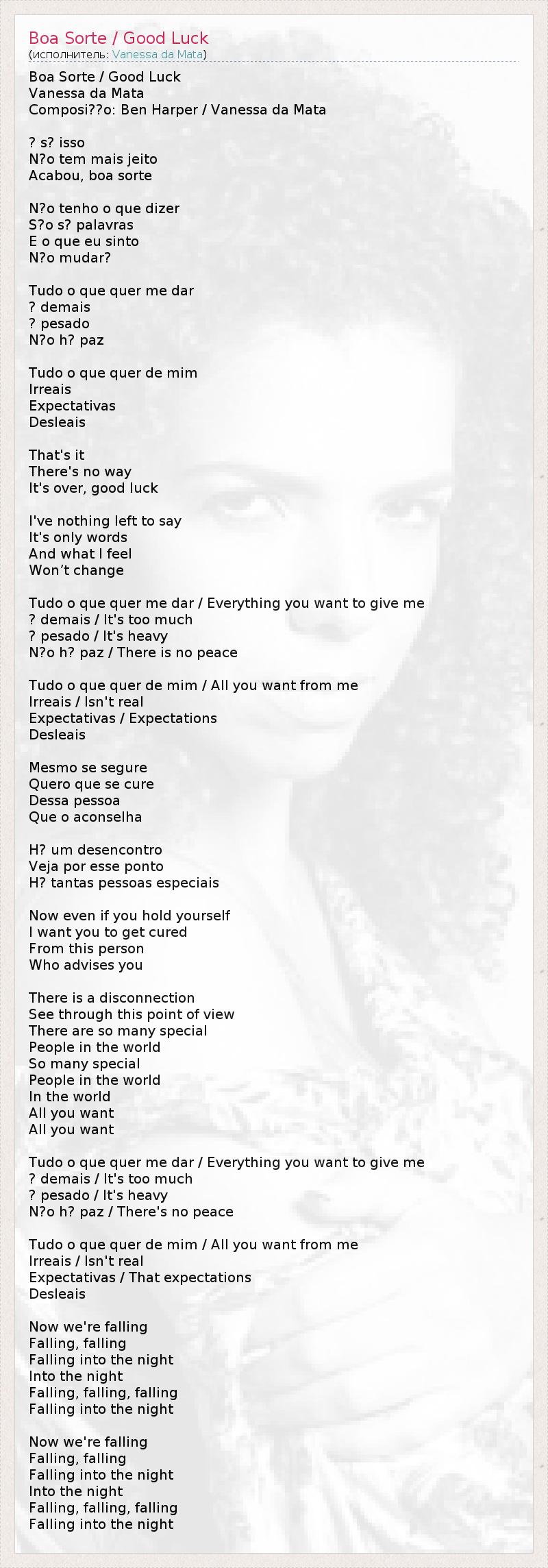 А как ты думаешь, о чем песня "Boa Sorte / Good Luck" ?