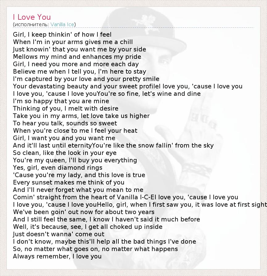 Comin' straight from the heart of Vanilla I-C-EI love you, 'cause I love you
