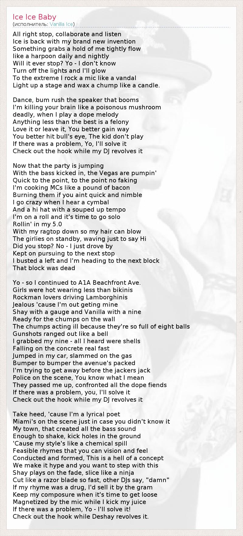 А как ты думаешь, о чем песня "Ice Ice Baby" ?