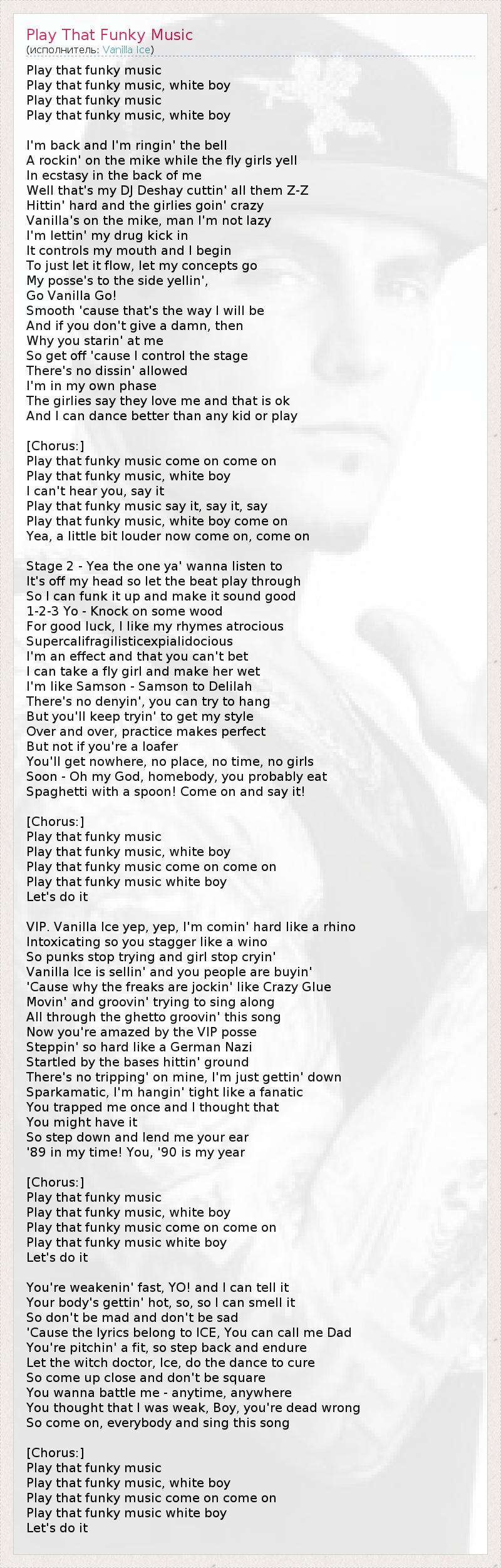 А как ты думаешь, о чем песня "Play That Funky Music" ?