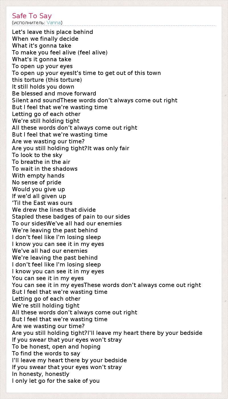 А как ты думаешь, о чем песня "Safe To Say" ?