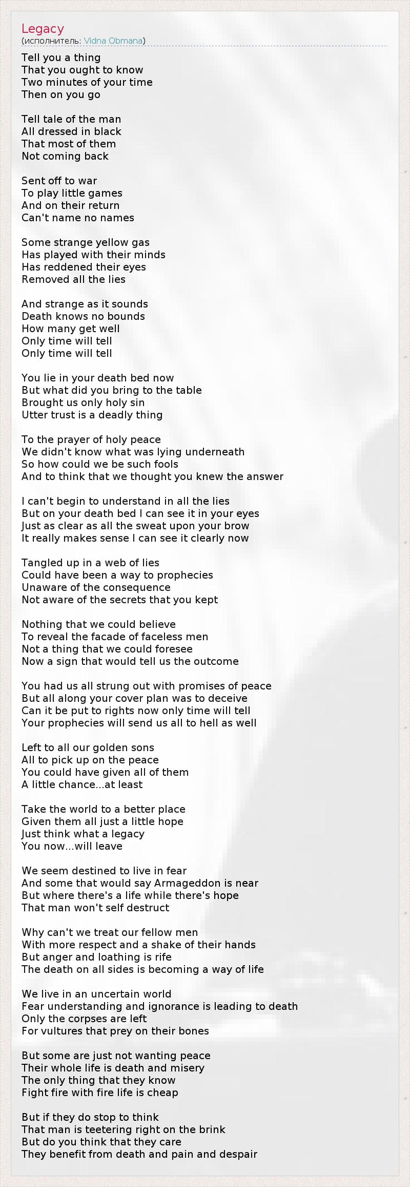 А как ты думаешь, о чем песня "Legacy" ?
