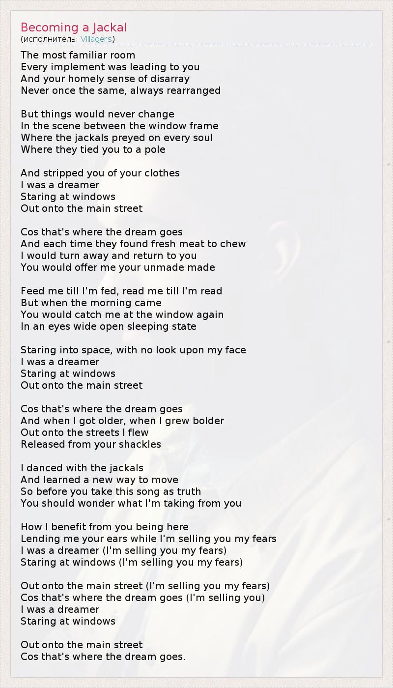 А как ты думаешь, о чем песня "Becoming a Jackal" ?