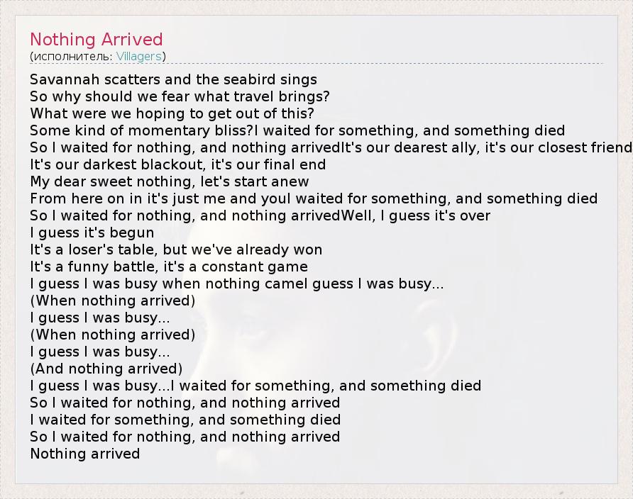 А как ты думаешь, о чем песня "Nothing Arrived" ?