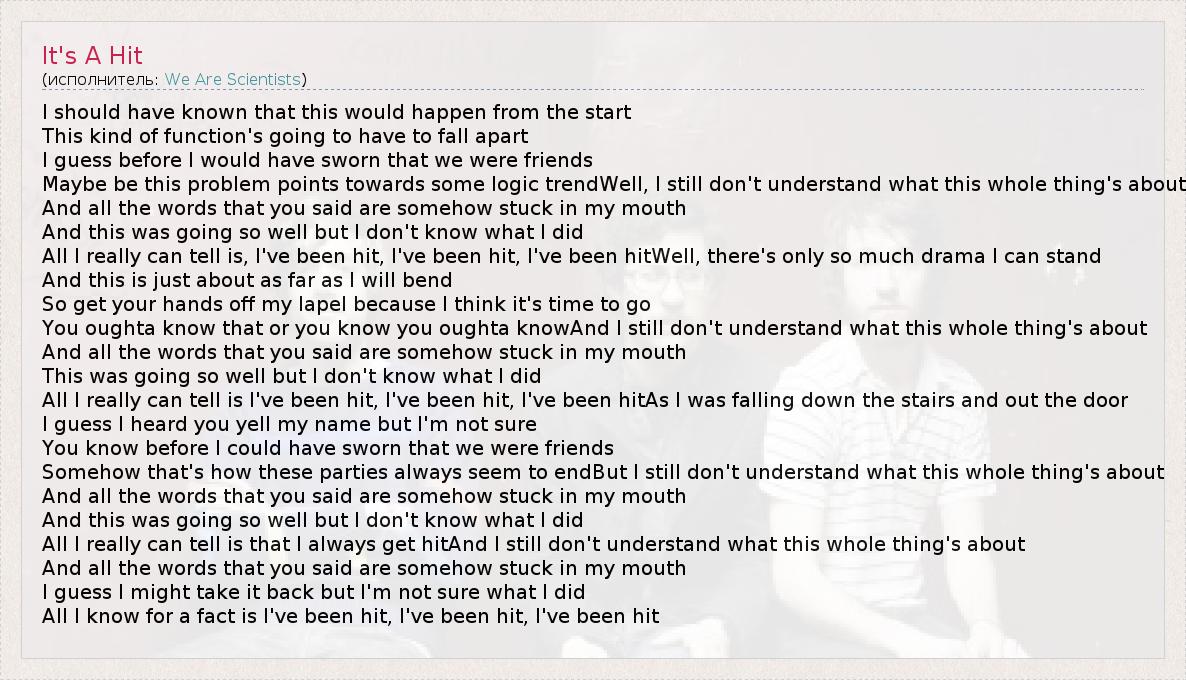 А как ты думаешь, о чем песня "It's A Hit" ?