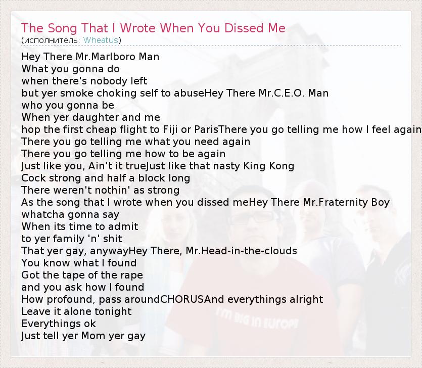 ГлавнаяИсполнителиWheatusThe Song That I Wrote When You Dissed Me