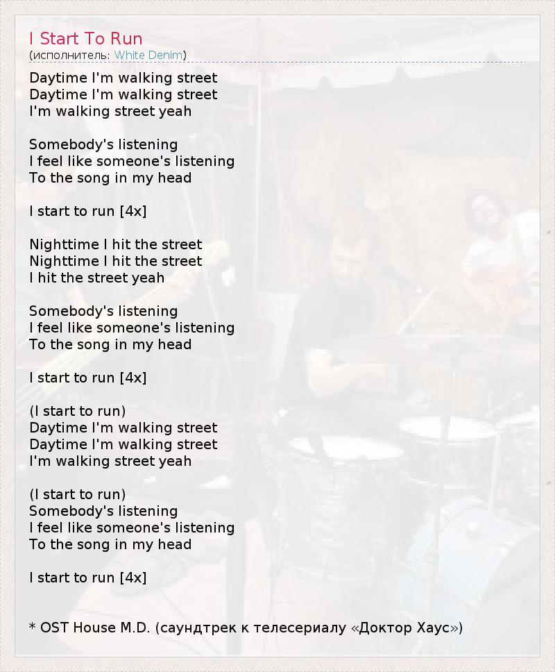 А как ты думаешь, о чем песня "I Start To Run" ?