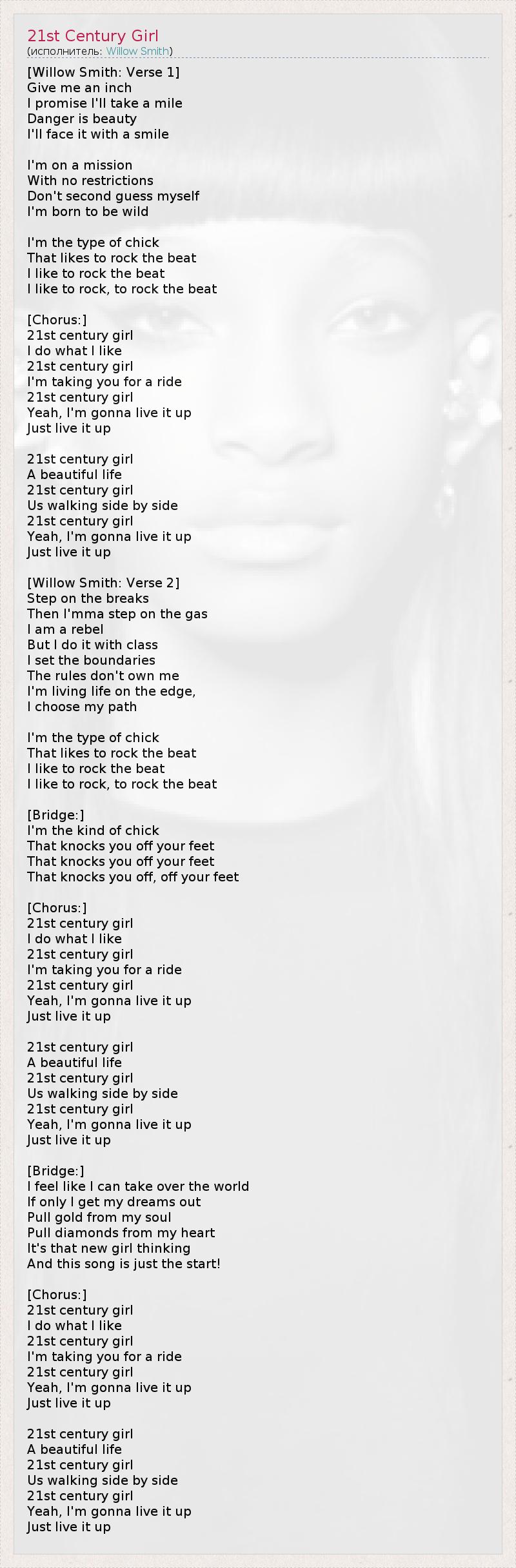А как ты думаешь, о чем песня "21st Century Girl" ?