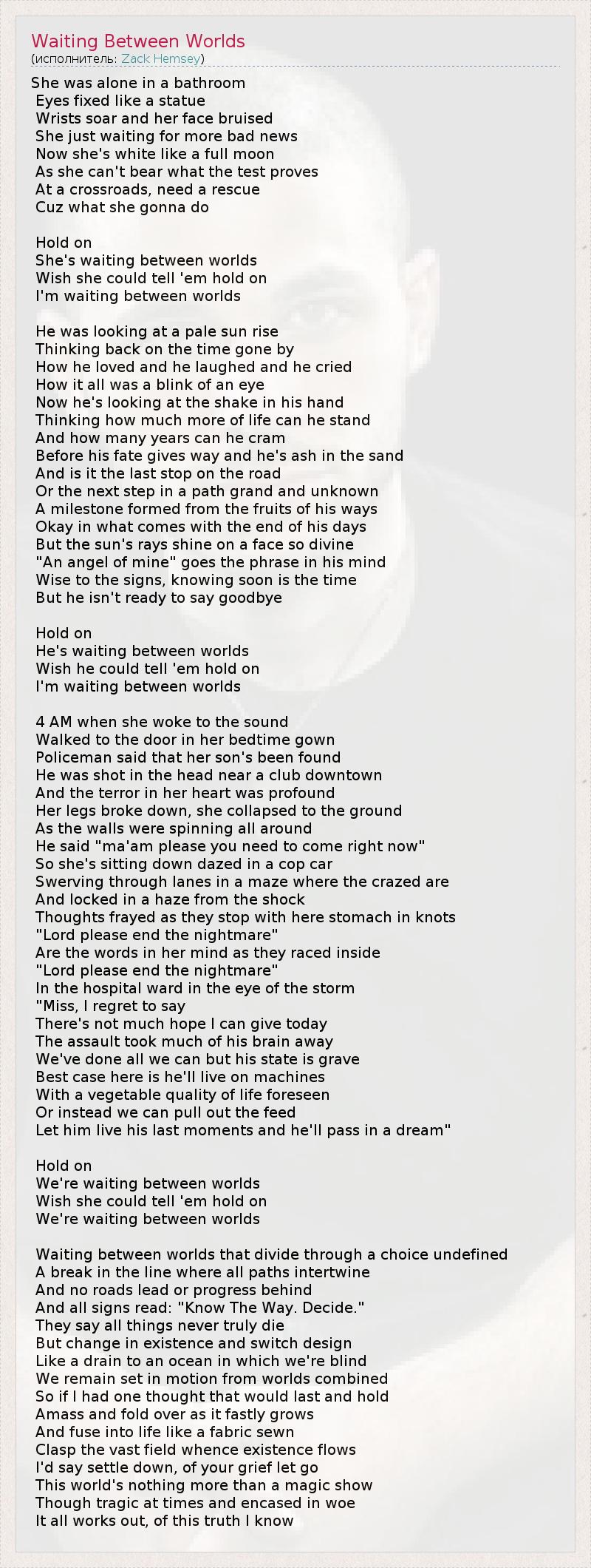 А как ты думаешь, о чем песня "Waiting Between Worlds" ?