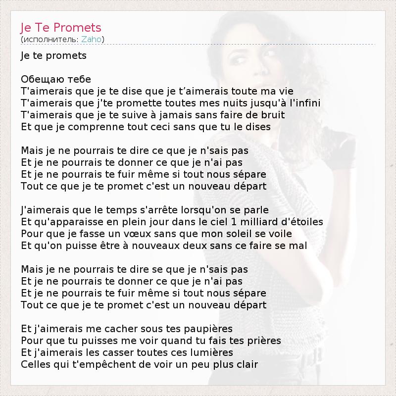 А как ты думаешь, о чем песня "Je Te Promets" ?