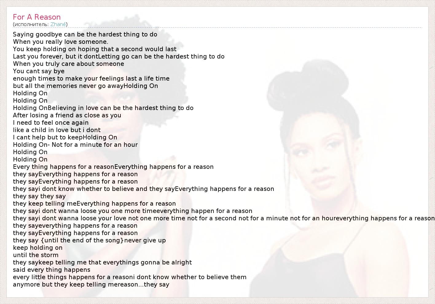 they sayi dont wanna loose your love not one more time not for a second not for a minute not for an houreverything happens for a reason